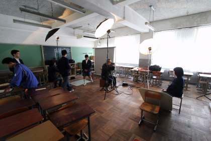 6限に3年前半クラスは、進路写真とアルバム写真の撮影がありました。
