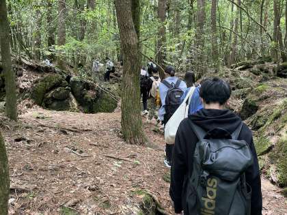 青木ヶ原樹海を散策している様子です。