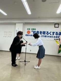 社会を明るくする運動啓発標語で本校から2名が優秀者に選ばれ6月19日(月)京都市北区区役所で表彰式が行われました。その時の様子です。