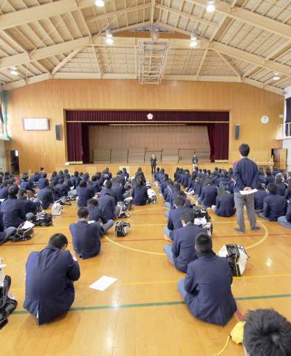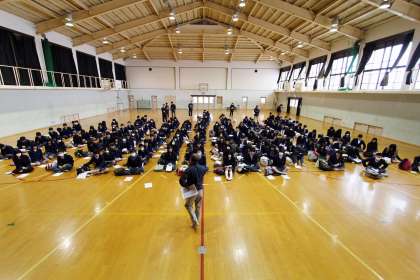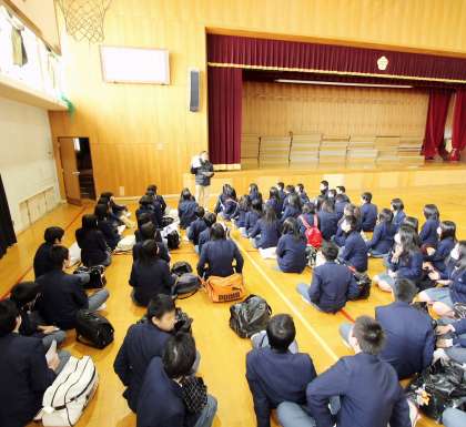 3年は4限に体育館で私学受験の前日指導がありました。