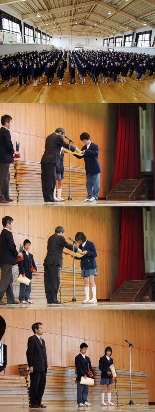 1限目は、体育館で本年度の終了式がありました。