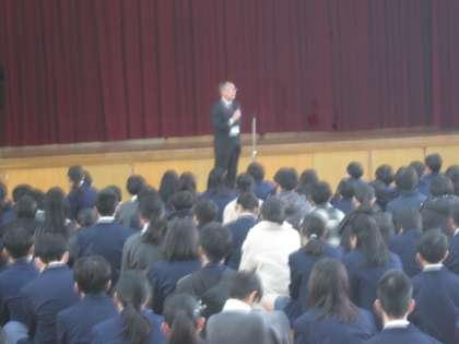 今年の最後の修了式は、体育館で行いました。校長先生の話の後、先生からの話と生徒会本部の話がありました。在校生の皆さんは、修了式にふさわしい態度で臨むことができました。