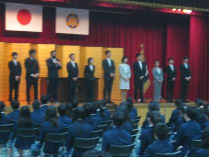 新しい仲間たちと共に新しい生活のスタートです。新入生はまだまだ緊張の面持ちでしたが、期待に胸を膨らませていました。ようこそ衣笠中へ、みんなが「笑顔でこれて、笑顔ですごせて、笑顔でかえれる」学校をつくっていきましょう。