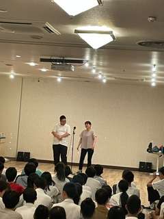 衣笠演芸会を行いました。ダンスやコント、歌など、プロ顔負けの演芸会です。会場は大盛り上がりでした。そして何と最後にサプライズで先生による漫才があり、これもまた大いに盛り上がりました。