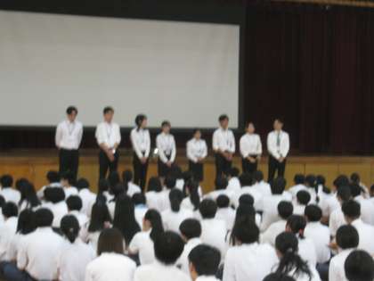 本日26日から3週間,教育実習の先生が来られています。将来の教員を目指して,8人の実習生が来られています。いろいろなことを相談したり,仲良くしてください。
