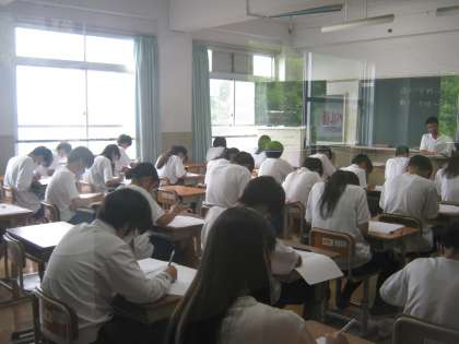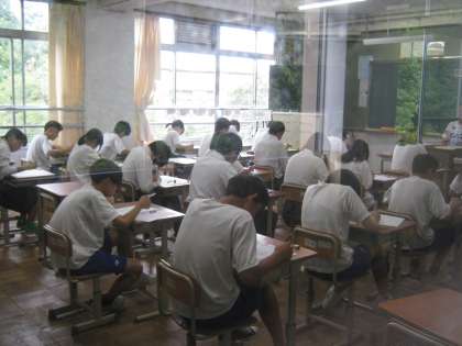 8月27日(火)昨日に引き続き夏休み明けテストを実施しました。本日は、2年生国語・数学3年生国語・英語のテストを行いました。どの学年も真剣に取り組んでいました。