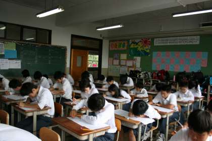 春テストよりも実施教科数が多く、生徒たちは必死の様子。
