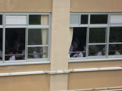 今日の写真は、1年生校舎から見た、3年生の教室風景です。