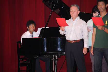 指揮者は校長先生。伴奏は田島先生です。