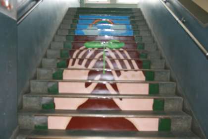 校内の2カ所に、美術部さんが作成した「階段アート」があります。
