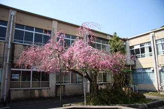 京都市立学校・幼稚園 名木百選の桜、中庭のしだれ桜も咲きました。