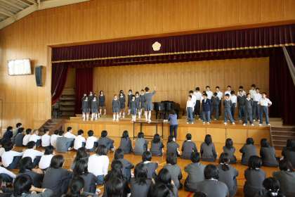 本日5限、1年は体育館で合唱の学年練習をしました。