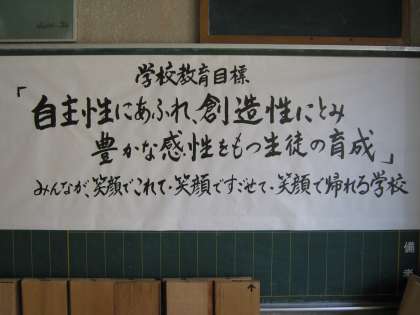 掲示してある「学校教育目標」は、江崎先生の自筆です。