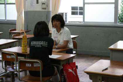 放課後に生徒が担任の教師と普段の学校生活について話しあいます。