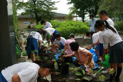 有志の生徒が植木鉢への植え替え作業をしてくれました。