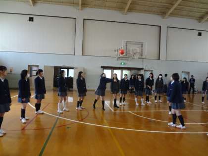 男子と女子に分かれて、できるだけ長くパスをつなぎます。