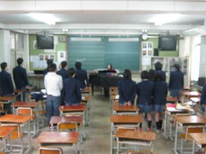 音楽室から卒業式に歌う歌が聞こえてきました。思わず歌声に誘われて音楽室に入りました。「旅立ちの日に」「ありがとう」を歌っている姿を見て、心にジーンとくるものを感じました。