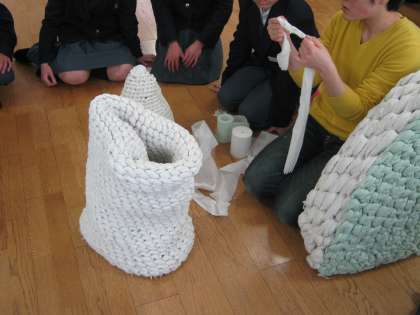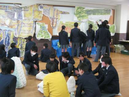 今年も、1年美術の授業で大学と連携し鑑賞授業を実施します。今日は京都市立芸術大学の先生と卒業生が作品を持参し来校されました。作品を鑑賞し、感じたことや疑問を発言するのがねらいですが、3クラスとも積極的に授業に参加していました。残り2クラスは木曜日に実施します。