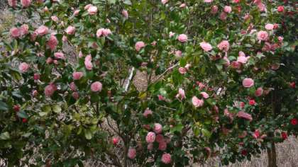 第2校舎の北側のヤブツバキが満開です。