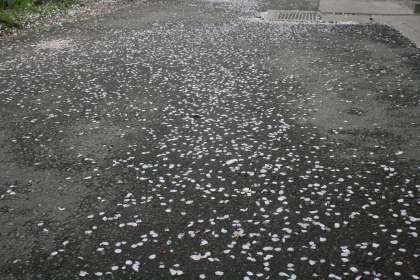 昨夜からの雨と今日の強風でほぼ満開を迎えた