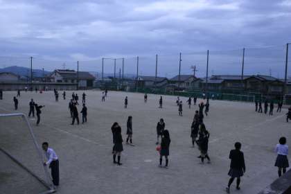 多くの生徒がグランドに出て、バレーボールなどをして楽しんでいます。