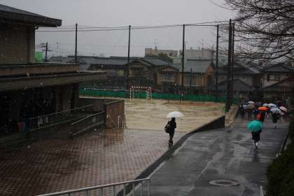 昼前頃から降り出した雨が、下校時になると雪(みぞれ)に変わりました。