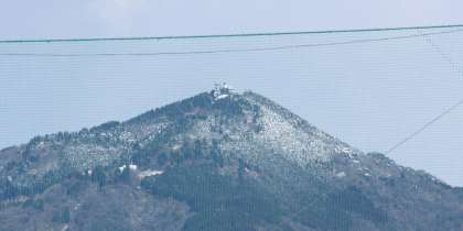 校門から入り、グランドのネット越しに見た比叡山も雪を戴いていました。