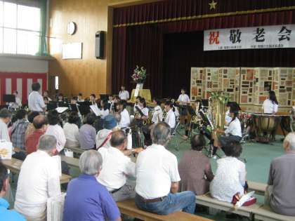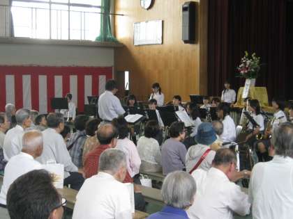 昨日の「敬老の日」吹奏楽が毎年恒例となっている「翔鸞学区敬老会」で演奏を行いました。曲目はいつもと違い、部員たちが生まれる前に流行した懐かしい曲シリーズでしたが、お年寄りのみなさんは口ずさんだり手拍子で楽しいひとときをすごされていました。