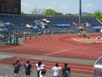 2日西京極陸上競技場で行われました。30度を超える気温の中、各種目に出場しました。残念ながら入賞者はいませんでしたが夏季大会での活躍を期待します。画像は男子400mです。衣中は6コースを走っています。