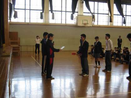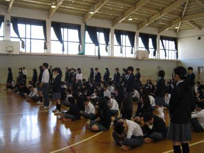 1時間目、3年生による「修学旅行の振り返り」が体育館で行われました。ペーロン大会の表彰や、修学旅行委員・体育委員の準備や当日の活動を全員で感謝し、修学旅行のまとめを各担当の先生から話されました。