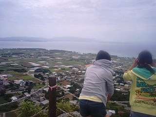 どのグループでしょうか。修学旅行情報16の下の写真に写っている右下の山に登っています。標高172.2mの城山(ぐすくやま)だそうです。伊江島で最も高い山です。