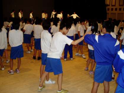 昨夜のレクの様子です。 教員の出し物はどうだったのでしょう。最後に生徒も参加して太鼓を持ってエイサーを踊って盛り上がったということです。