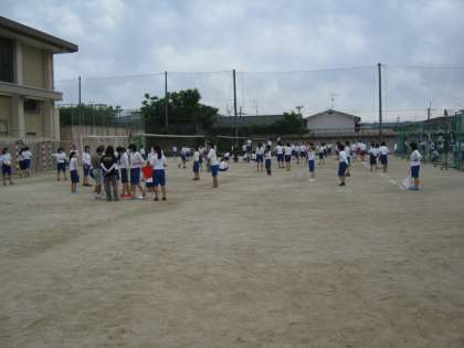 雨が降る予報もなんのその!時間を繰り上げての球技大会です。写真から白熱した様子がうかがえます。しかし!雨が…。最後までできればいいのですが。