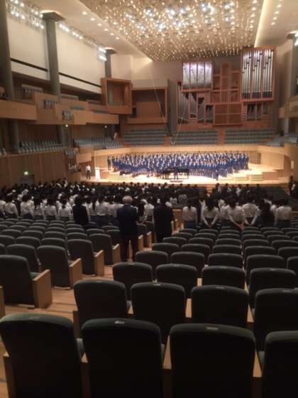 3年生クラス発表に続き、全校合唱「マイバラード」です。いよいよフィナーレ間近。