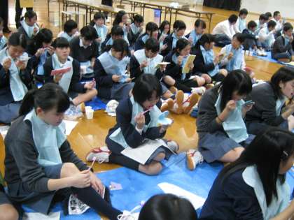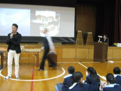 今日の5,6時間目、学校医の神谷先生から1年生に歯磨き指導の時間がありました。歯ブラシだけではなく、フロスも使って赤く染まった自分の歯をしっかり磨きました。これで虫歯菌も逃げ出すでしょうね!