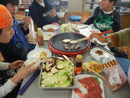 9、10組は調理実習をしました。回数を重ねてきて子どもたちもなれた手つきで包丁など扱えるようになってきました。メニューは焼き肉、3年生が最後の調理実習ということもあり、今回はクラスで楽しく実習をしました。みんなお腹いっぱい食べていました。
