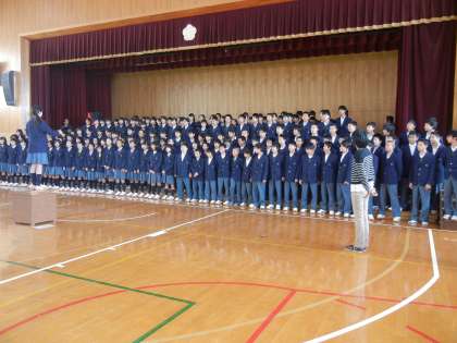 テスト終了後の4時間目に1、2年生は3年生を送る会に向けての歌練習をしました。今までは各パートごとに練習をしていましたが、今日は全員で合わせて歌いました。3/11(金)には3年生の心に響くハーモニーを作ってくれるでしょう。