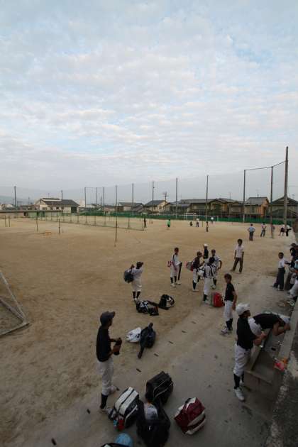 部活動終了後に、ソフトボール部と野球部が球技大会の準備をてくれました。