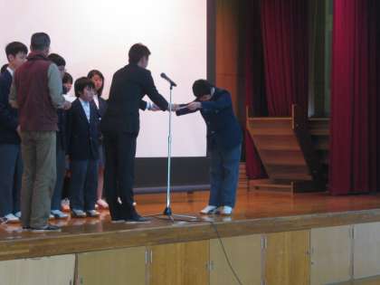 本日5時間目に全校集会があり、冒頭で春季大会の表彰がありました。卓球部は男子が団体で第3位、個人でブロック予選第2位、全市で第3位でした。おめでとうございます。