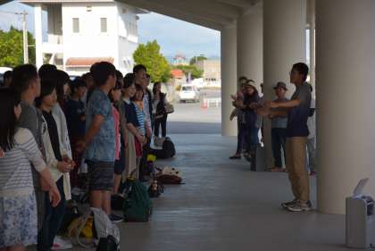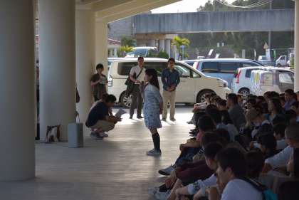 入村式の様子です。みんなで「島人ぬ宝」を合唱します。