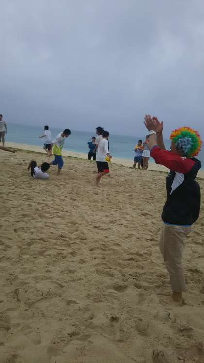 有志を募ってビーチフラッグ大会が行われました。反射神経とスピードが勝負です。スピードと言えばやっぱり…馬でしょ。ということでお馬さんです。