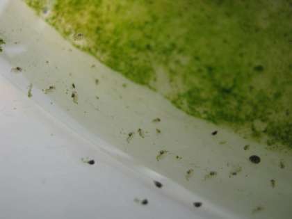 先月科学センターから頂いたミジンコを、本校理科室で育てています。生育環境が良かったのか、増殖中です!