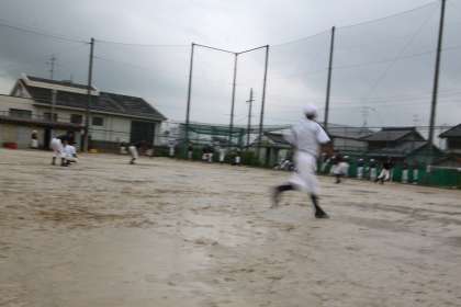水たまりがあっても、少々雨が降っていても気合いで練習しています。