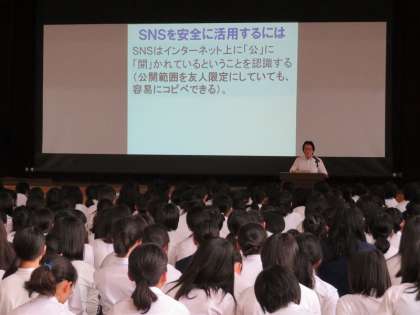 3時間目は「携帯教室」が体育館で行われました。KDDIナンバー1の講師をお迎えしての教室でした。生徒のみならず、保護者の方にも大変ためになる講演でした。