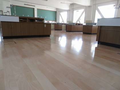 夏休みを利用して、校内では改修工事や定期点検・災害時用仮設トイレ設置工事が行われています。第1校舎では、調理室の床の張り替えが完成間近となりました。1年生の教室の床の張り替えは夏休み中に完成します。8ヶ所ある手洗い場は最終10月まで工事が続きます。安全最優先で工事を行いますが、生徒や保護者のみなさんは十分気をつけてください。また、工事車両の出入りや音等地域の皆様にもご迷惑をおかけしますが、ご理解をお願いいたします。