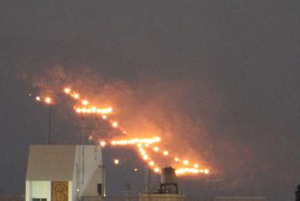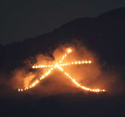 「大文字」と妙法の「法」、「左大文字」が衣笠中学校内から見えました。