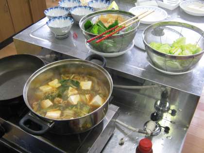 今日はちゃんこ鍋とキムチ鍋の2種類の鍋を調理しました。おいしそうにできていますね!