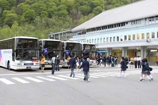 トロリーバスはトンネルの中を走ります。扇沢のバス停からいよいよ宿舎へ。