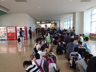 那覇空港14時発の飛行機に乗ります。