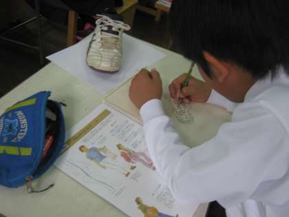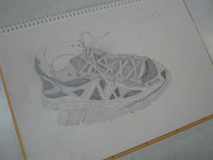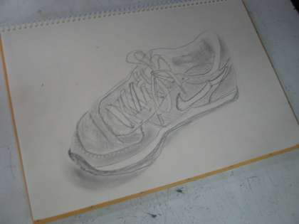「身近なものを描こう」と言うことで靴のデッサンに挑戦しました。
